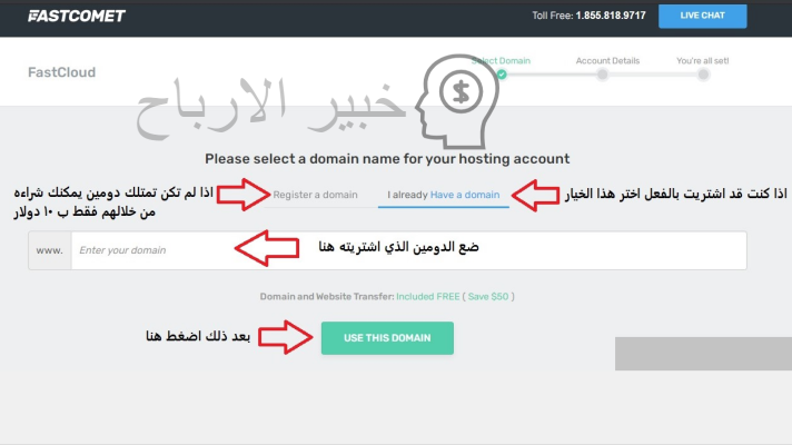 - تحصل علي دومين .com مجانا لمدة سنة.