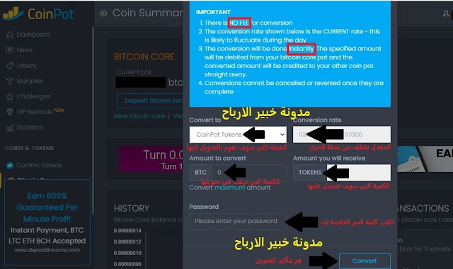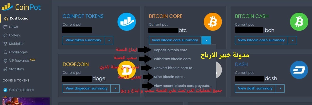 شرح واجهة موقع coinpot من الداخل
