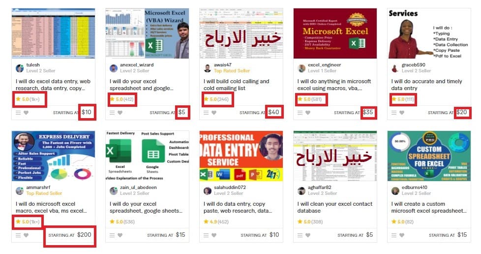 - تعرف علي طريقة عرض الباعة الاخرين للخدمة الخاصة بهم.