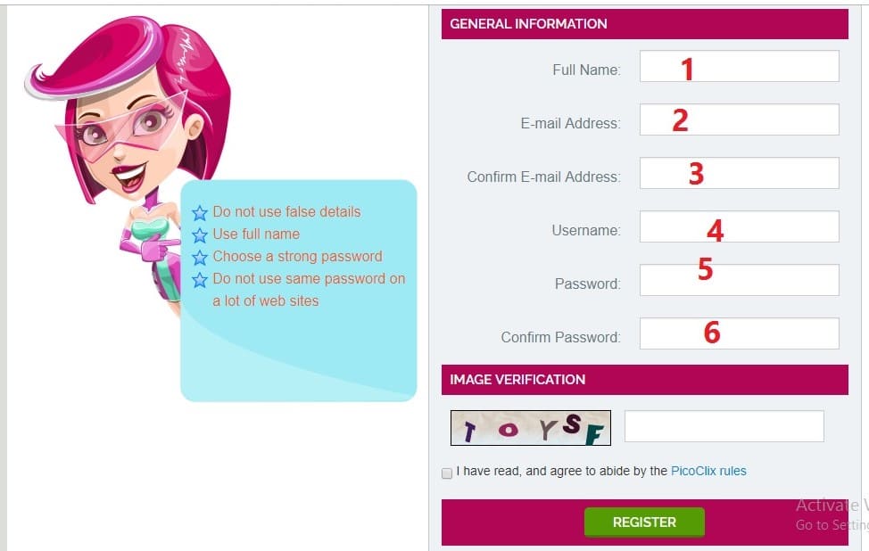 كيفية التسجيل في موقع picoclix