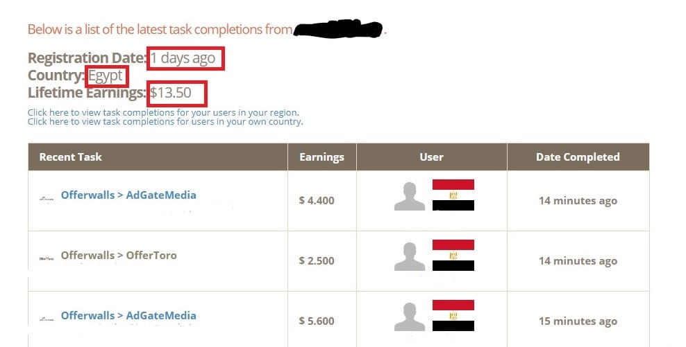يمكنك النظر الي الصورة بالاسفل و التي توضح كم يمكنك الربح من تلك الطريقة و احيانا اكثر من ذلك تبعا لطلبات التسجيل في اليوم .