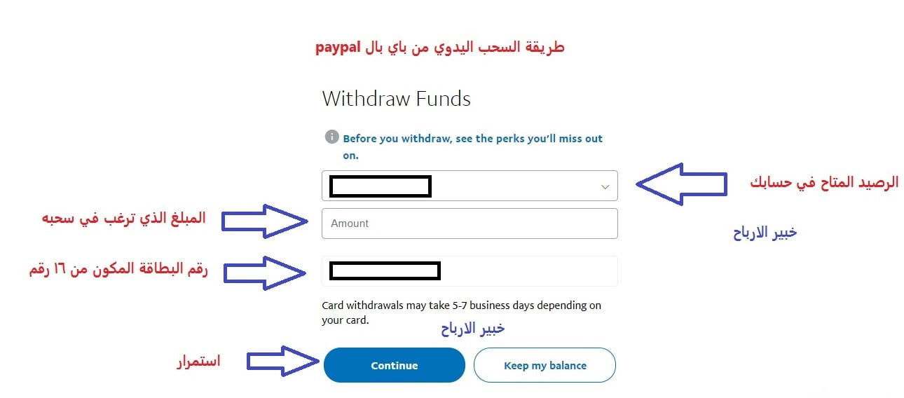 سحب الارباح من حساب الباي بال يدويا