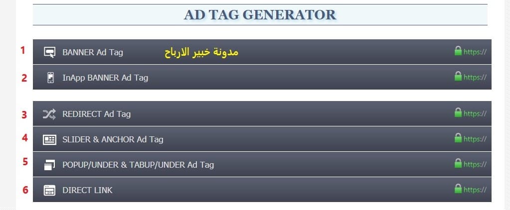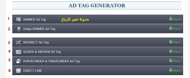 6- اعلان رابط مباشر : وهو عبارة عن لينك تقوم بارسال الزيارات اليه ويتم احتساب الارباح من عمليات التحويل او المشاهدات .