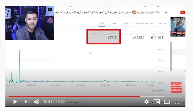 كان معدل الربح من ال 1000 مشاهدة هنا 1.79 دولار
