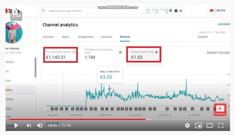 كما تلاحظ في الصورة بالاعلي CPM الخاص بالقناة هو ( 2.63 $ / 1000 مشاهدة )