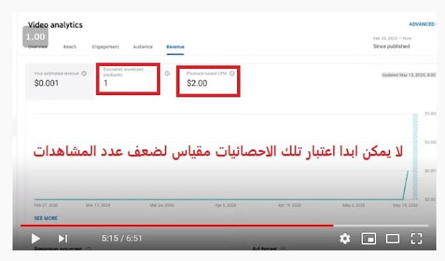 أي ان معدل ال CPM الخاص بهذا الفيديو هو ( حوالي 1 $ / 1000 مشاهدة )