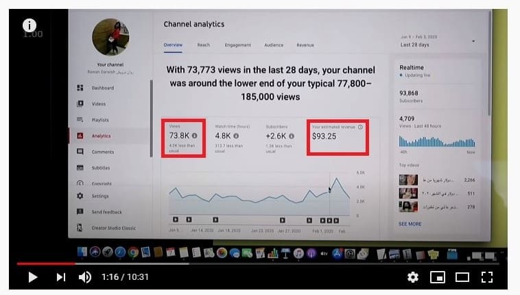سوف اقوم بتقسيم هذا الجزء تبعا للتخصص و اضع في كل جزء ارباح بعض القنوات و اخبرك بمتوسط الارباح الخاصة بكل تصنيف ( تجارة الكترونية – تسويق – محتوي ترفيهي – محتوي طبخ – و هكذا ).